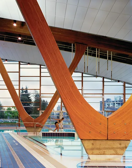 膠合木是一種強質(zhì)比高,美觀,可降解的工程復(fù)合材,是常用的木結(jié)構(gòu)建筑用材,被廣泛用于大跨度曲梁,橋梁,建筑工程領(lǐng)域,如體育場,大型公共會所的建造等。