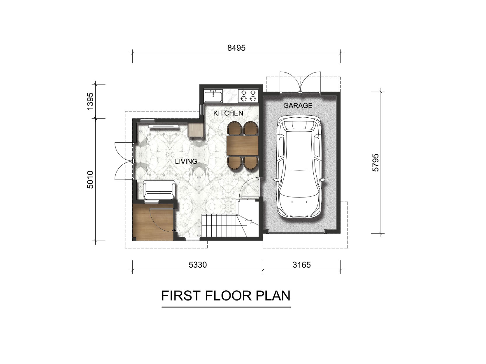 2 層、 2 臥室、 2 廳、 1 衛(wèi)生間、 0 露臺(tái)、 1 車庫(kù)、