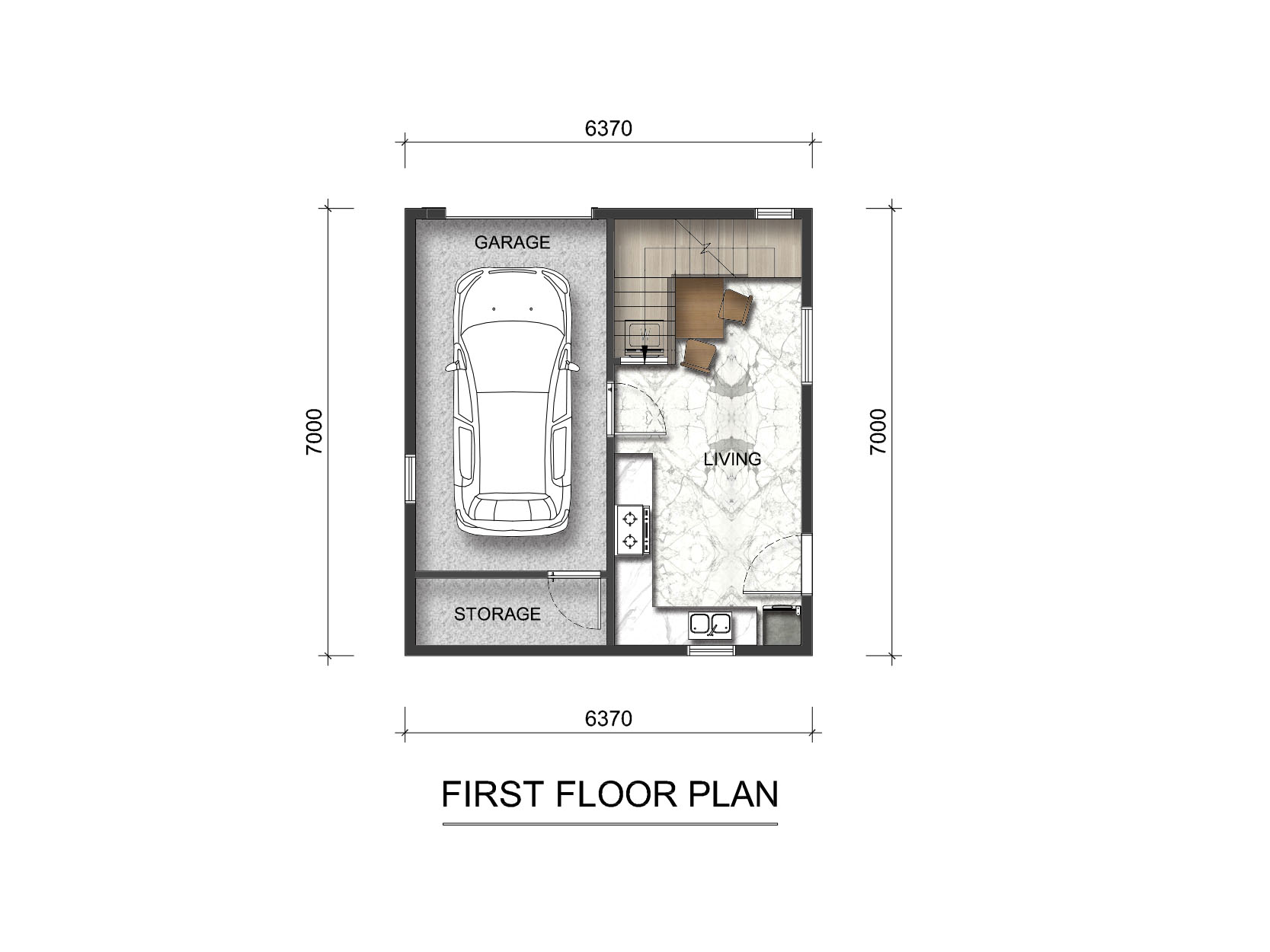 開間 7 m、 進(jìn)深 6.1 m、