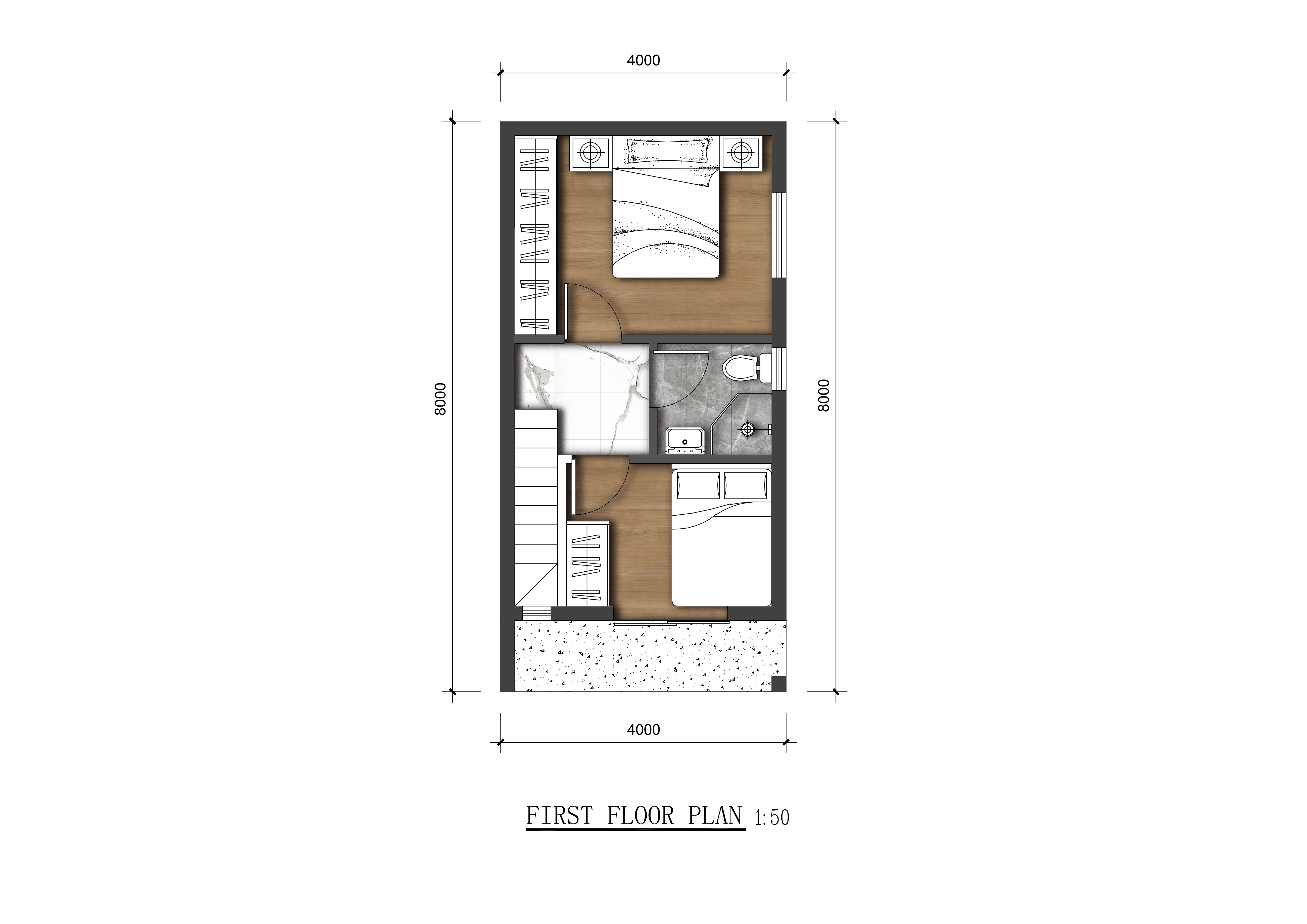 PLAN 6639 的基本信息 尺寸 寬 4m 深度 8m 占地面積(㎡) 建筑面積 32㎡ 一面積 30㎡ 第二面積 30㎡ 總建筑面積 60㎡ 高度(米) 1 樓 2.995m 二樓 3.04m 總高 5.995m 每戶 樓層 X2 臥室 X2 客廳 X1 浴室 X1 露臺 X1 車庫 X0 閣樓 X1